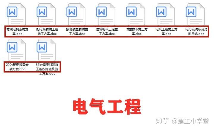这份 电气工程施工方案 主要包括了 配电箱安装工程施工方案、电力系统综合对时系统方案、建筑电气施工方案、有线电视系统方案、接地装置安装施工方案 等等。