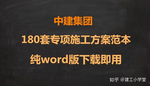 这份 中建集团的180套专项施工方案范本 , 不仅全面系统,准确规范,而且 还都是 Word电子版本,可以直接下载打印。
