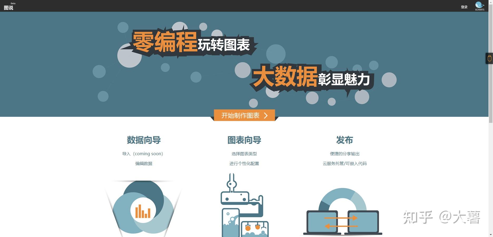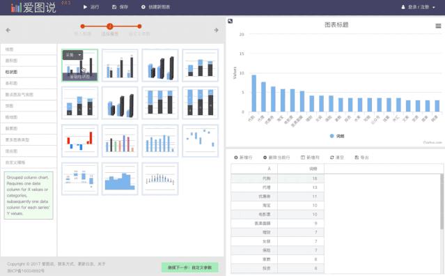 是一个非常简单容易上手的一个可视化工具网站,只需要简单的三步:导入数据,选择模板,设置参数即可生成可视化图表。在处理一些基础图表时,选择这个网站再合适不过了。