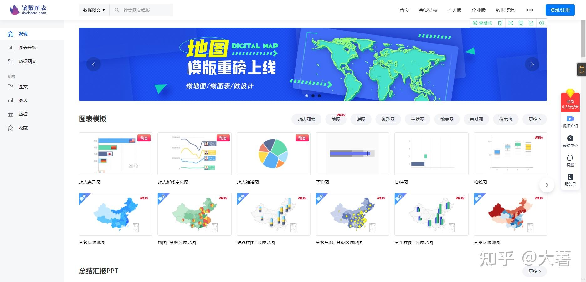 网站有非常多的动态模板,修改数据就可以直接用。同时,有词云图、环形图、桑基图、雷达图等超多可视化模板可选择,几分钟就改一张微信配图,一刻钟就可以做出漂亮的长图。