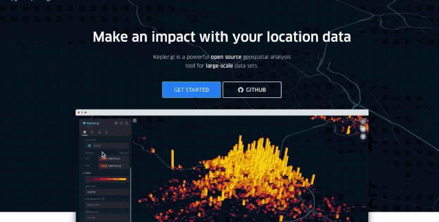 是Uber数据可视化团队继deck.gl产品之后又一简单、模块化的基于地理信息的可视化工具。通过这个网站,可以很轻松地生成各种各样的3D地图可视化,比如3D柱状图、抛物连线图、点图、热力图、轨迹图等等。