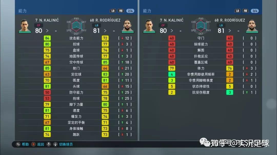 实况足球手游版OPR升降后球员各项能力值一览:米兰双雄!