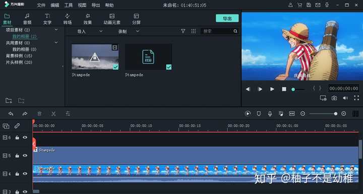 使用时,只需要 将视频和SRT字幕文件分别拖拽到不同的时间轨道,就能超快速完成字幕添加。