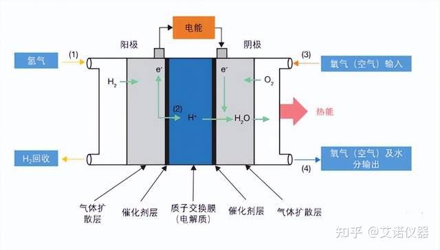 可以看出,氢气作为燃料,通过与氧气反应,产生了电子和水。电子随即流入电路,产生电流,完成了对外输出电能的过程。