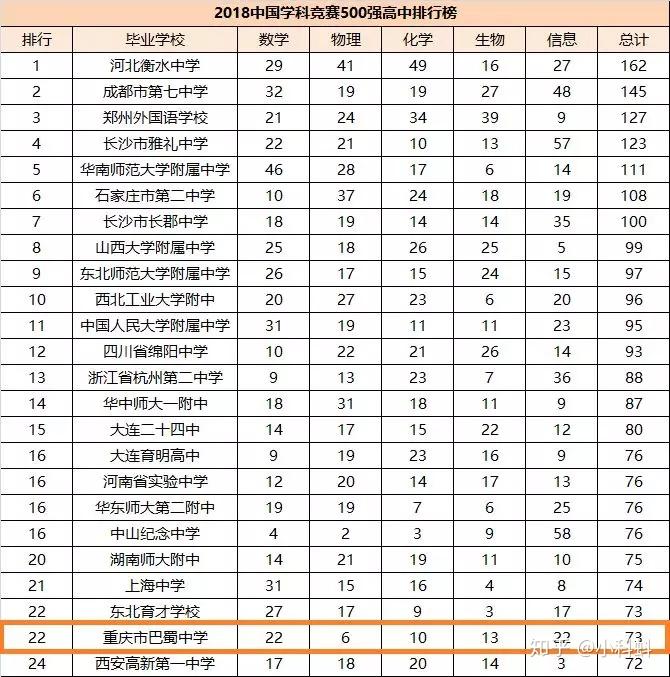 其中 巴蜀中学 位列 全国第22位,重庆市第一!