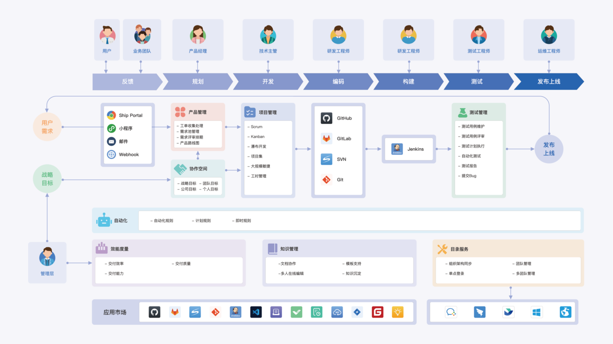 - 与研发项目管理、测试管理具体工作项深度关联,形成“需求-开发-测试-知识沉淀”管理闭环;
