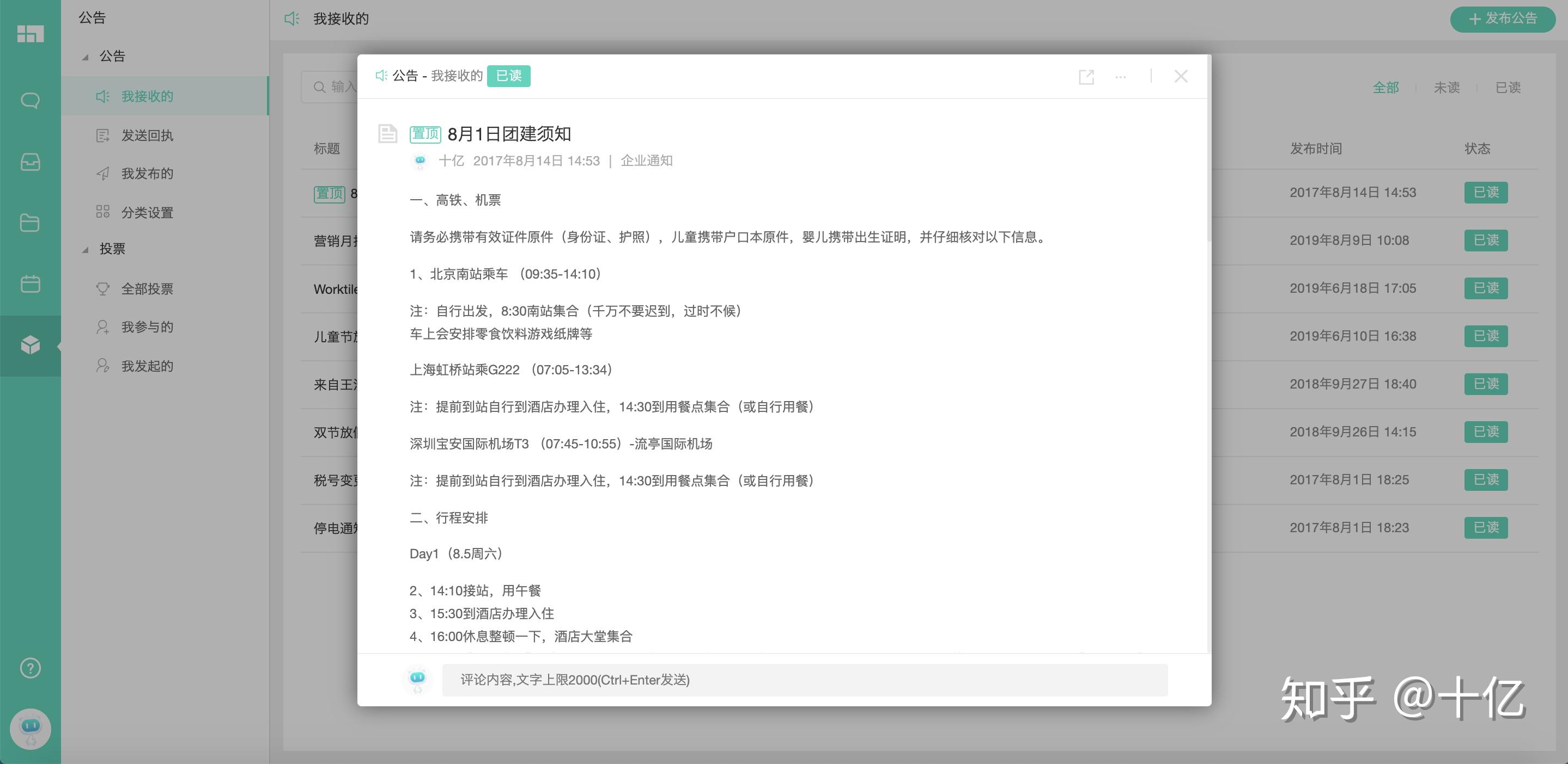 公告:有重要通知可以直接发公告,并能看到哪些成员已读和未读,代替邮件,非常方便。