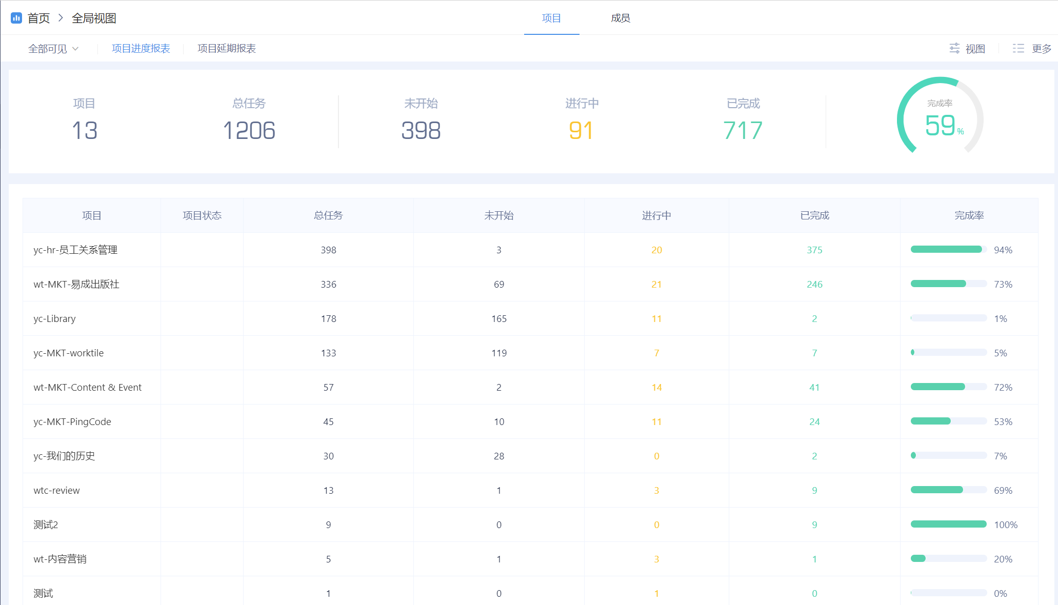 能随时查看目前我们部门都有哪些项目,分别的当前进度情况,以及每个项目的时间节点