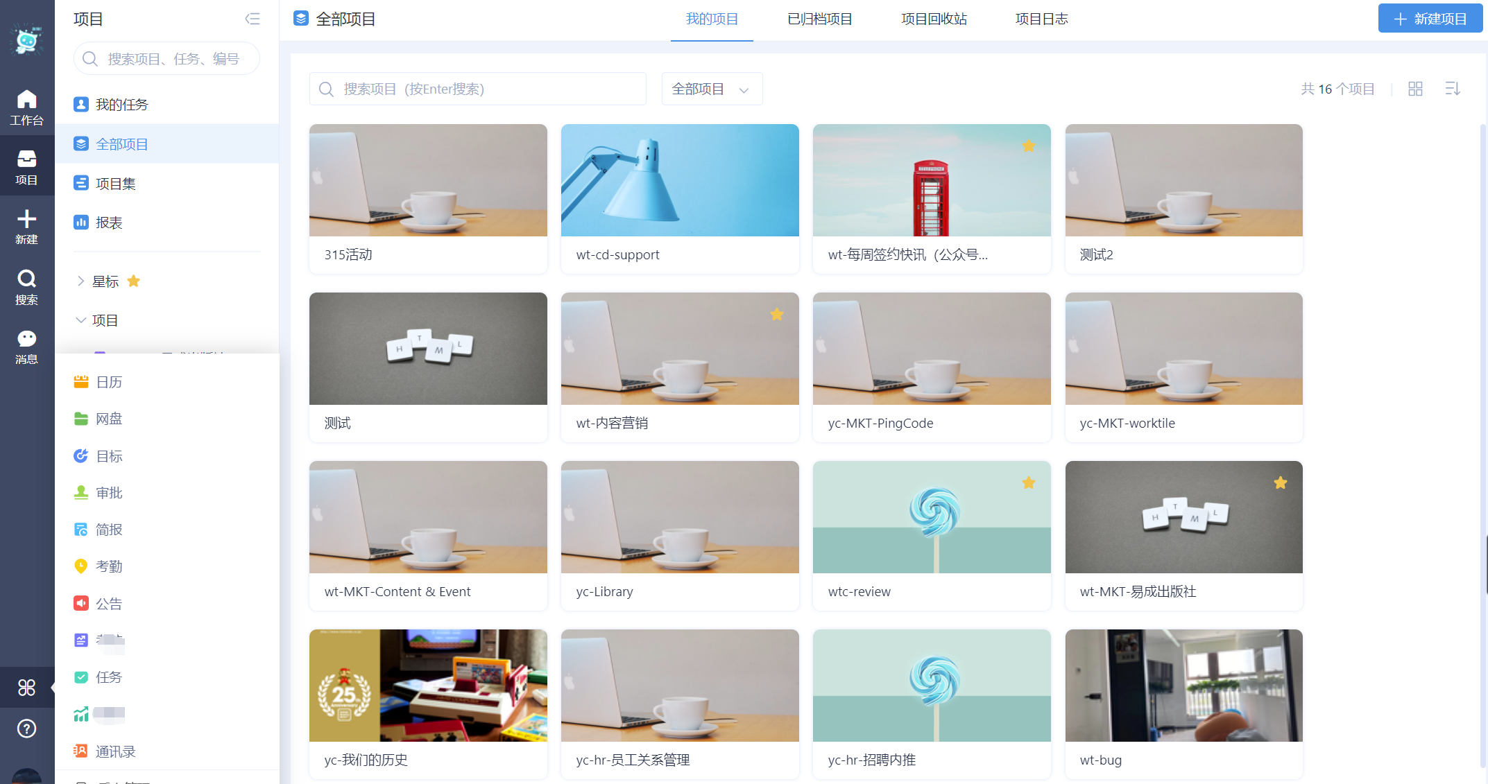 项目管理、任务指派、进度管理、日程管理、甘特图、企业+个人网盘(项目文档)、OKR目标管理、简报、审批。