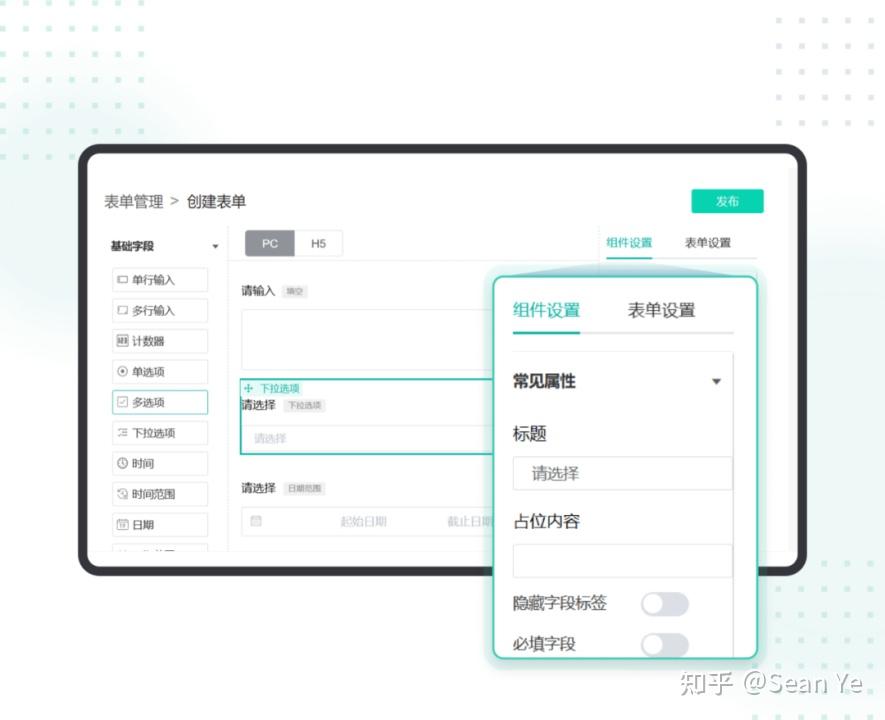 表单通过拖拽组件,自由搭配内容,创建完成后点击“发布”,简单好用。