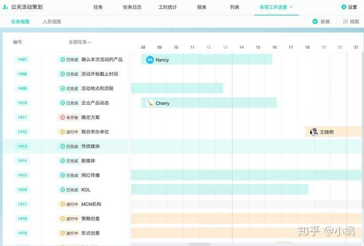 也能随时查看目前我们整个公司每个人的工作内容,当前他正在做哪个项目,时间节点是什么,他下一个阶段要做什么项目,时间节点是什么。