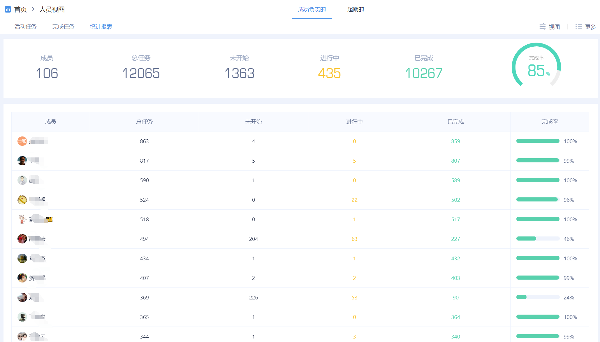 人员视图 :查看每个人负责的任务情况,进入如何;