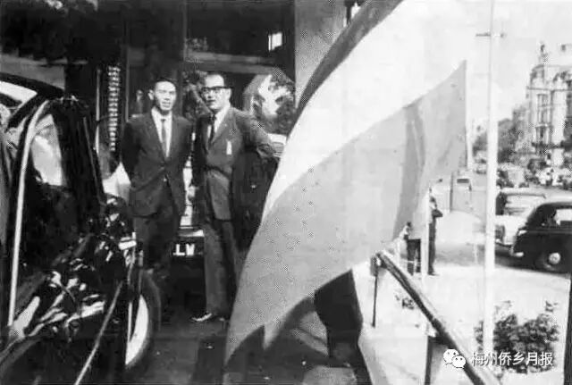▲1966年世界杯举行期间,李惠堂与梅县同乡林万里在爱丁堡留影。