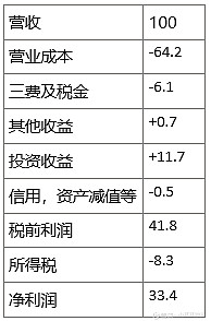 投资收益占比较高,其中主要是对联营企业和合营企业的投资收益 。净利率高,所得税率约19.9%,低于法定25%,主要是非应纳税投资收益的影响。