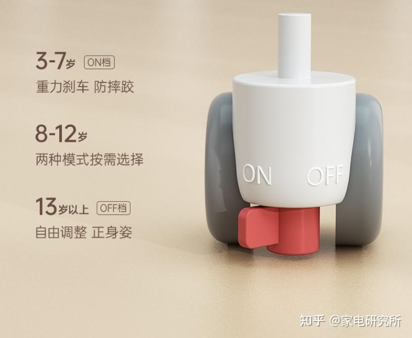 带重力刹车这个功能,对于3-7岁的小朋友非常友好,他在椅子上爬上爬下不用担心侧翻摔跤,移动起来也很方便,孩子坐上去之后,椅子会像八爪鱼一样紧紧的扒住地面。