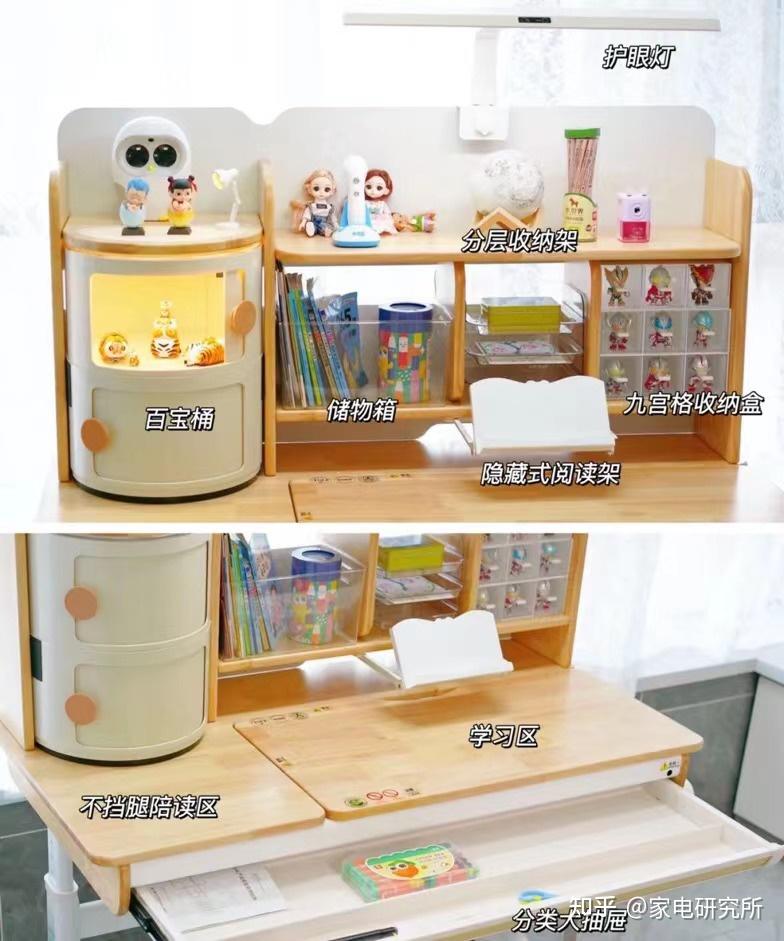 想要孩子喜欢学习桌,大大的桌面和合理的收纳空间都是必要因素。