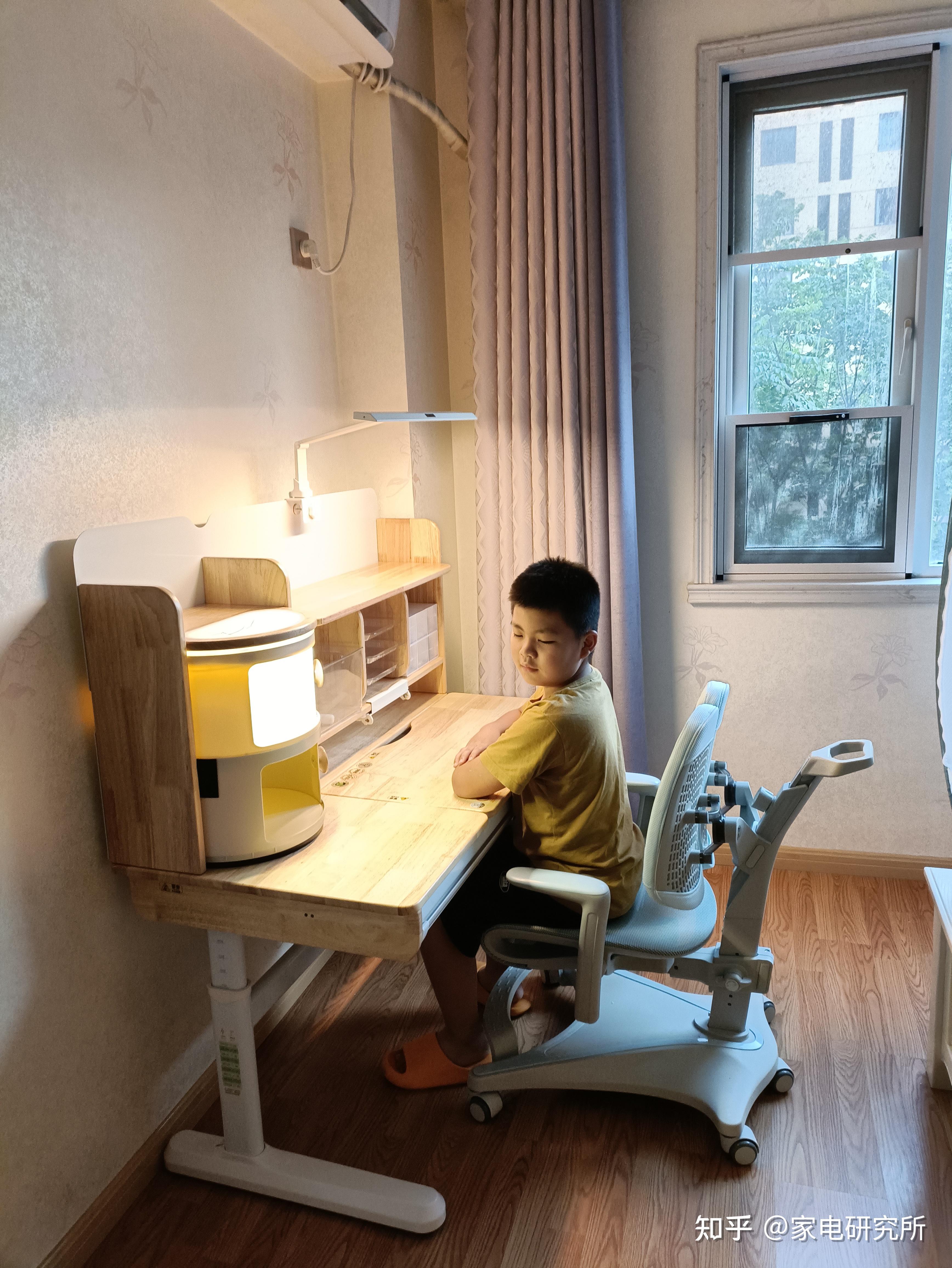 百宝桌和零压椅都是 可升降 的, 陪伴孩子成长 ,纠正和养成正确的书写姿势。护眼灯认准国AA级,无蓝光无可视频闪。
