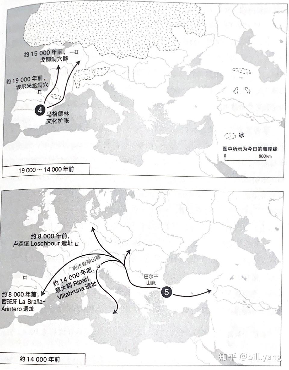 大约19000年前,冰川消退, 西班牙的马格德林文化 (可能是3.5万年前,西欧奥瑞纳文化的一支)开始离开温暖的避难所,向东北迁徙,占领今天的法、德地区。
