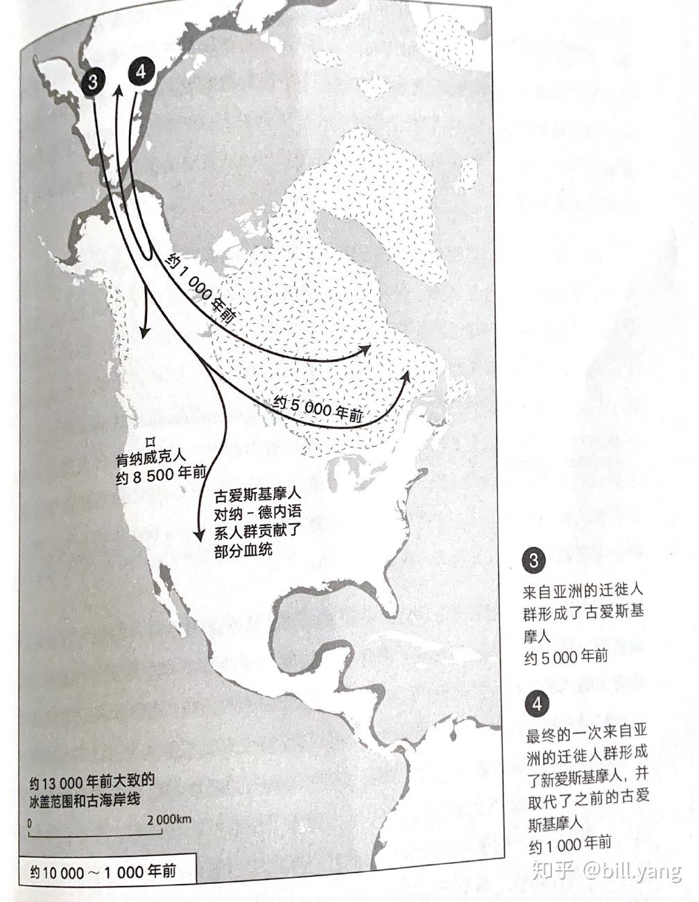 与人类在非洲和欧亚大陆的漫长历史相比,人类在美洲的历史要短的多。主要是美洲与欧亚大陆之间巨大的地理障碍,西伯利亚大片寒冷,严酷且贫瘠的土地,直到末次冰期,有能力在严寒条件下生存的人类祖先才终于到达了西伯利亚的东北角落,他们通过当时白令海峡进入阿拉斯加,然后就没办法继续南下了, 当时覆盖加拿大的、长千米厚的冰盖形成了道冰川长城,阻档了南下道路。