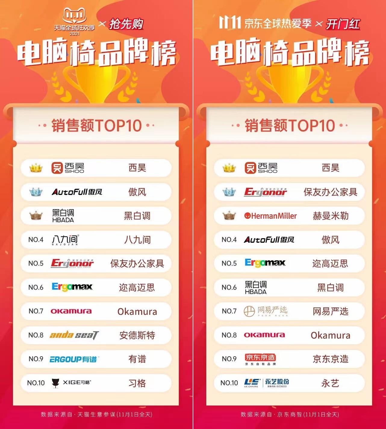 评价一个品牌的产品如何,销量是最直接能够反映出用户对于产品的认可度,而在618和双11期间,西昊人体工学椅的销售在某东和某猫双平台都位列第一名,并且有着不错的口碑。