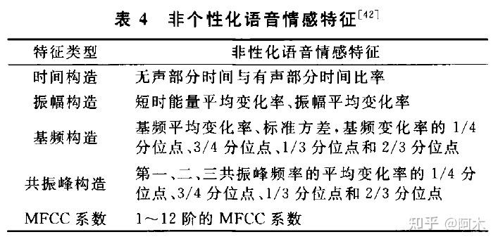 有文章提取基频、短时能量、共振峰的变化率及它们的变化范围、方差等统计值作为非个性化特征,同时提取了传统基频、共振峰等个性化特征,并用这两类特征进行实验,结果表明非个性化特征对SER有着很大的作用,且这类特征受不同说话者的影响更小。