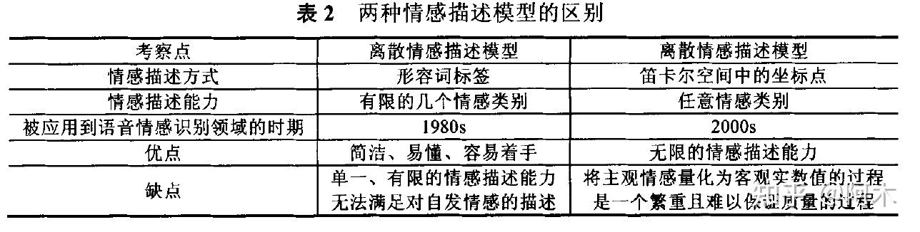 模型复杂度 :离散描述模型较为简洁、易懂,有利于相关研究工作的着手和开展,而维度模型却要面对定性情感状态到定量空间坐标之间如何相互转换的问题;