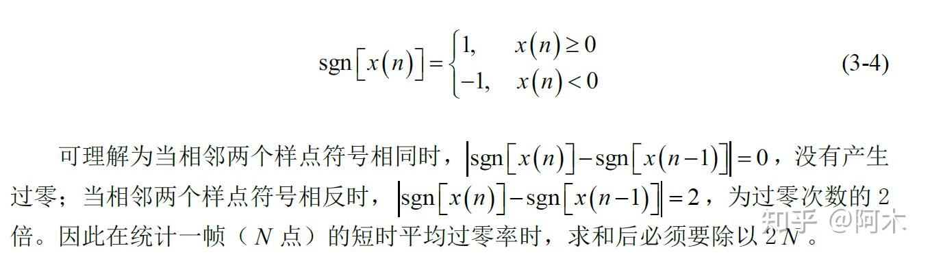 短时平均过零率代表的是每一个分帧内语音信号幅度值为零的次数。语音信号的短时平均过零率特征一定程度地能够描述信号的频率谱特性,因此能够大致估算谱的特性。短时平均过零率的计算如下: