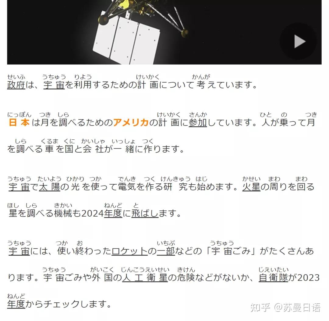 播报 语速非~常~慢~ ,完全能照顾到N4N5级别学习者的需求,而且提供的原文是 标注了假名的 。点击上图中的 左侧蓝色按钮(ニュースを聞く) 就能听慢速新闻的音频了。慢速新闻稿是根据新闻内容进行总结过的,所以不太会有很复杂的语法,初级基本不在话下。