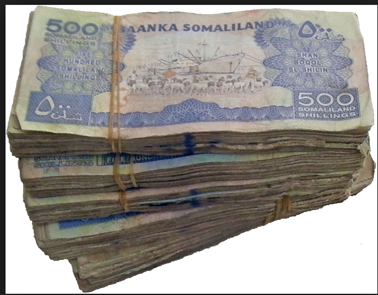 因为当地经济体量小,加上对本币缺乏信心的民众,更愿意兑换美元和欧元这样的硬通货,邻国吉布提法郎和埃塞俄比亚比尔也是许多人认可的货币。此外,央行对钞票交易不禁止。这才出现哈尔格萨钞票市场的钞票成捆出售,又没人担心会被哄抢的景象。