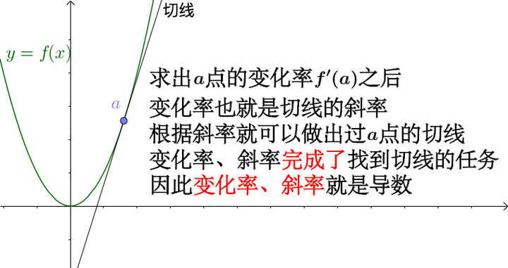因为“以直代曲”是微积分的基础,所以我们首要任务就是要找到这个“直”,也就是切线,也就是所谓的“线性近似”。导数就是为了完成这个任务需要使用的数学工具。