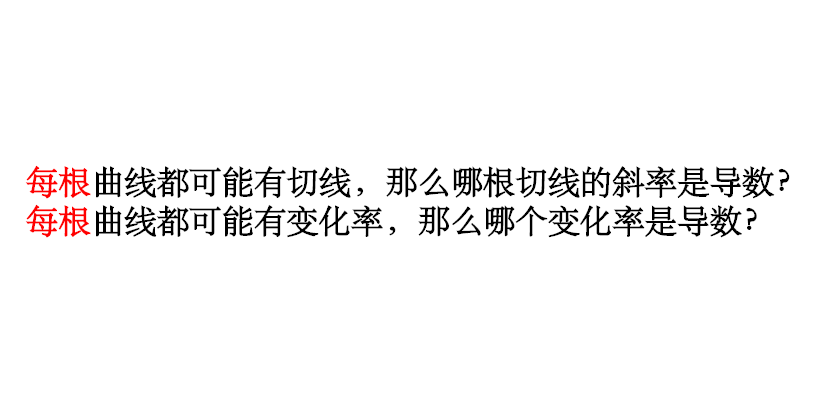 我们一般是上面这样的学习过程,所以我们认为,导数是曲线的变化率、是瞬时速度、是加速度,还可以是切线的斜率。