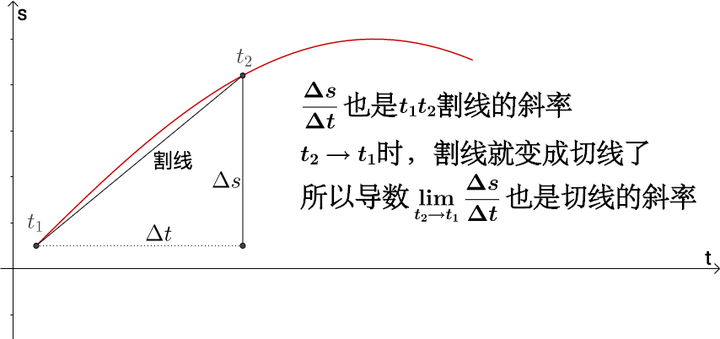 曲线上两个点确定一条割线。当两个点足够靠近的时候,割线变成了切线。