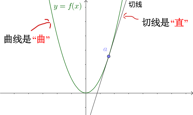 顺便说一句,此时在 a 点附近同样也有 f(x)\approx f(a)+A\Delta x 。