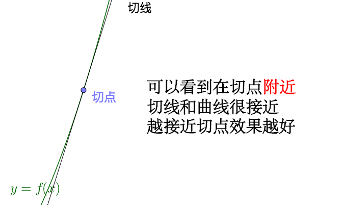 “以直代曲”的意思就是,切线可以在切点附近很好的近似曲线: