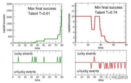 这个模型只是告诉我们,面对时间和空间上巨额分布的财富机会,运气远比天赋更加重要。