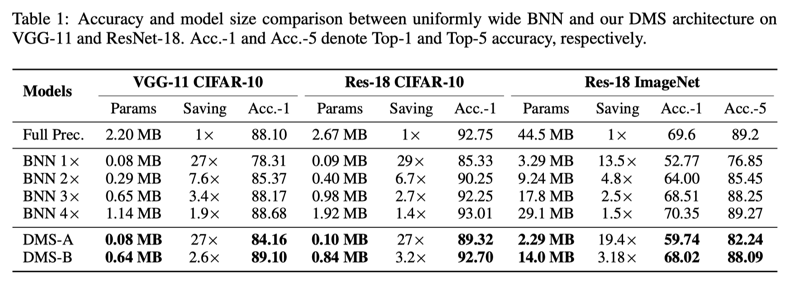实验表明,搜索得到的结构具有较大的精度潜力,使用ResNet-18拓扑,通过寻找最优的channel设置,在参数量比标准BNN少的情况下,可以实现7%左右的精度提升。