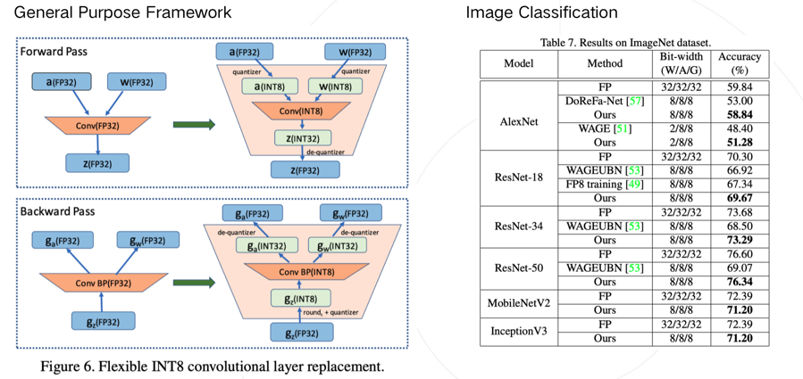 Q:INT8 Training是从头开始训练的时候就采用8bit定点吗?还是说先全FP32精度进行训练一段时间,再进行量化?是仅对卷积层进行了8比特定点量化吗?