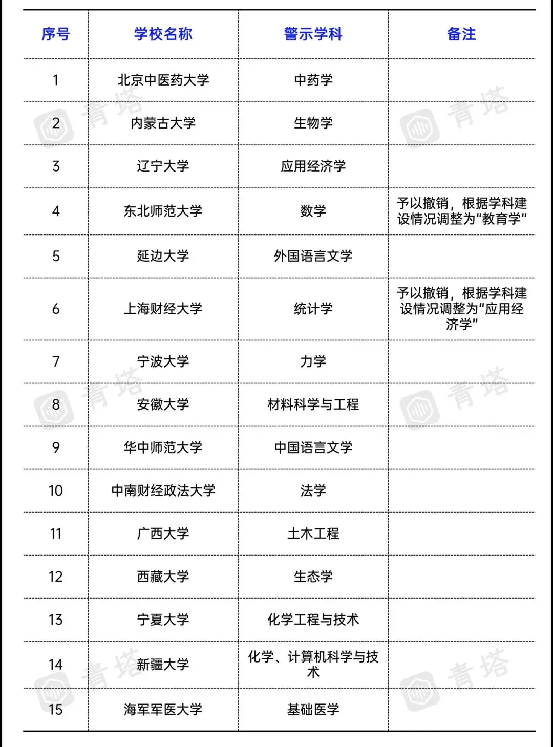 公开警示/撤销是为了警示学科和调整后的学科,然后2023年接受再评价,届时未通过,则调出建设范围。
