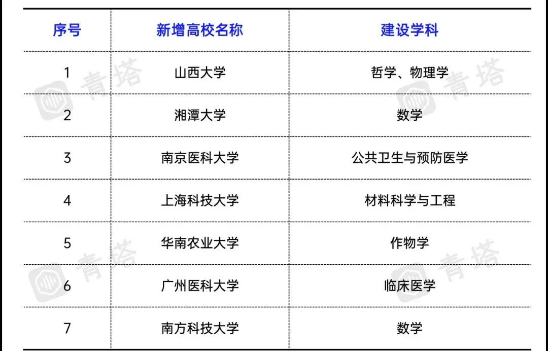 跟第一轮“双一流”建设名单相比,第二轮“双一流”建设名单新增了 7所 高校。