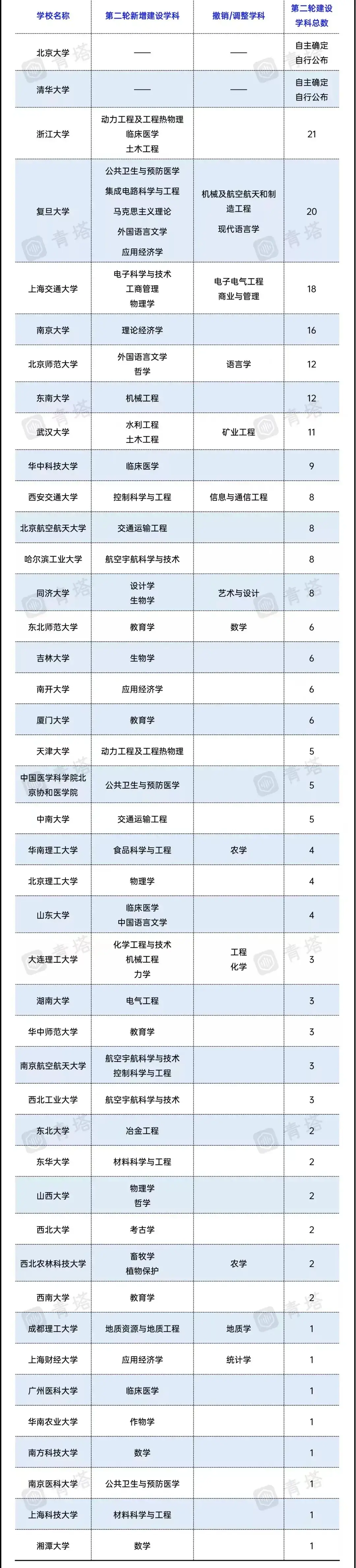 跟第一轮“双一流”名单相比,第二轮“双一流”名单在学科方面有哪些大的调整呢?