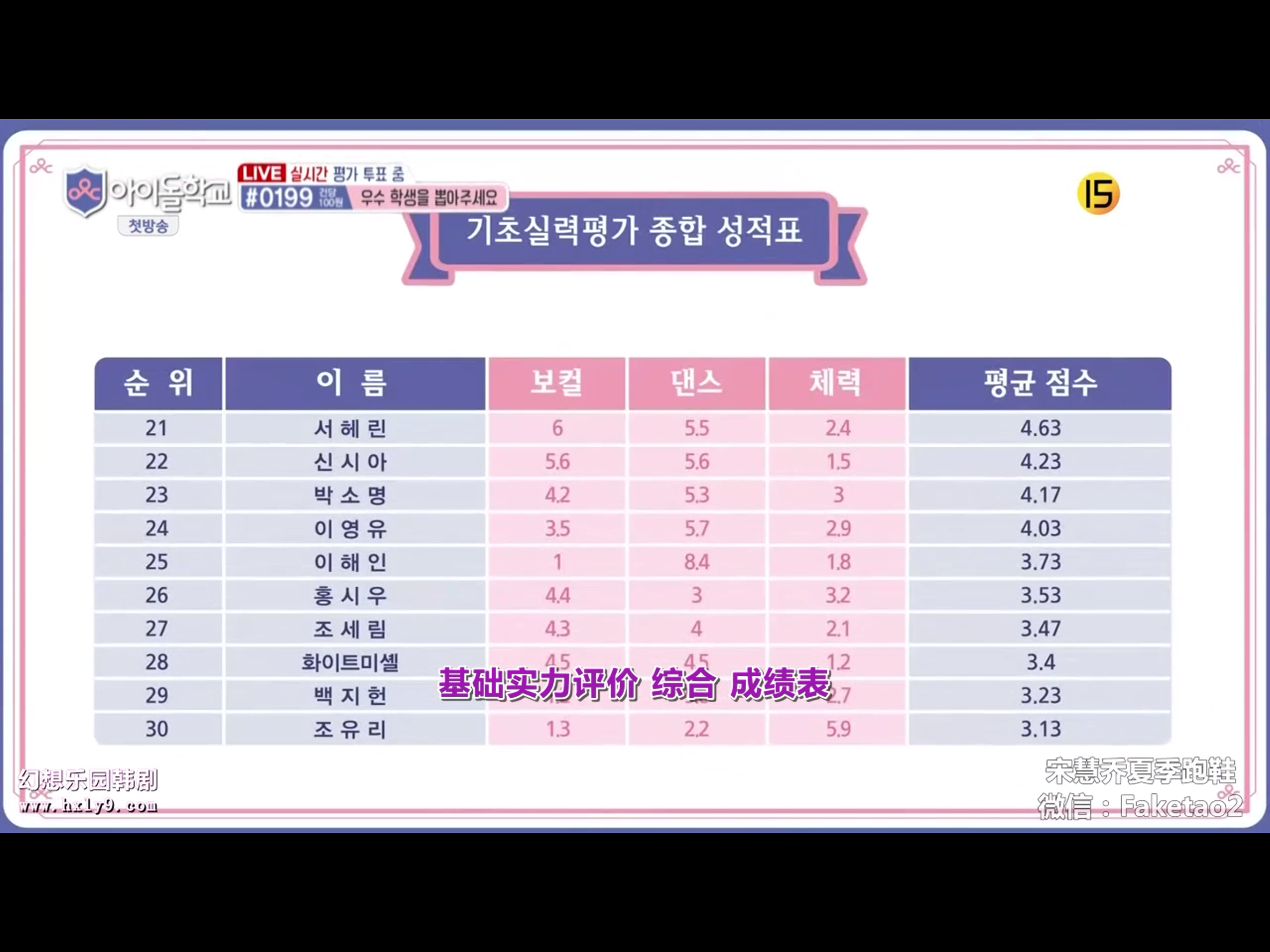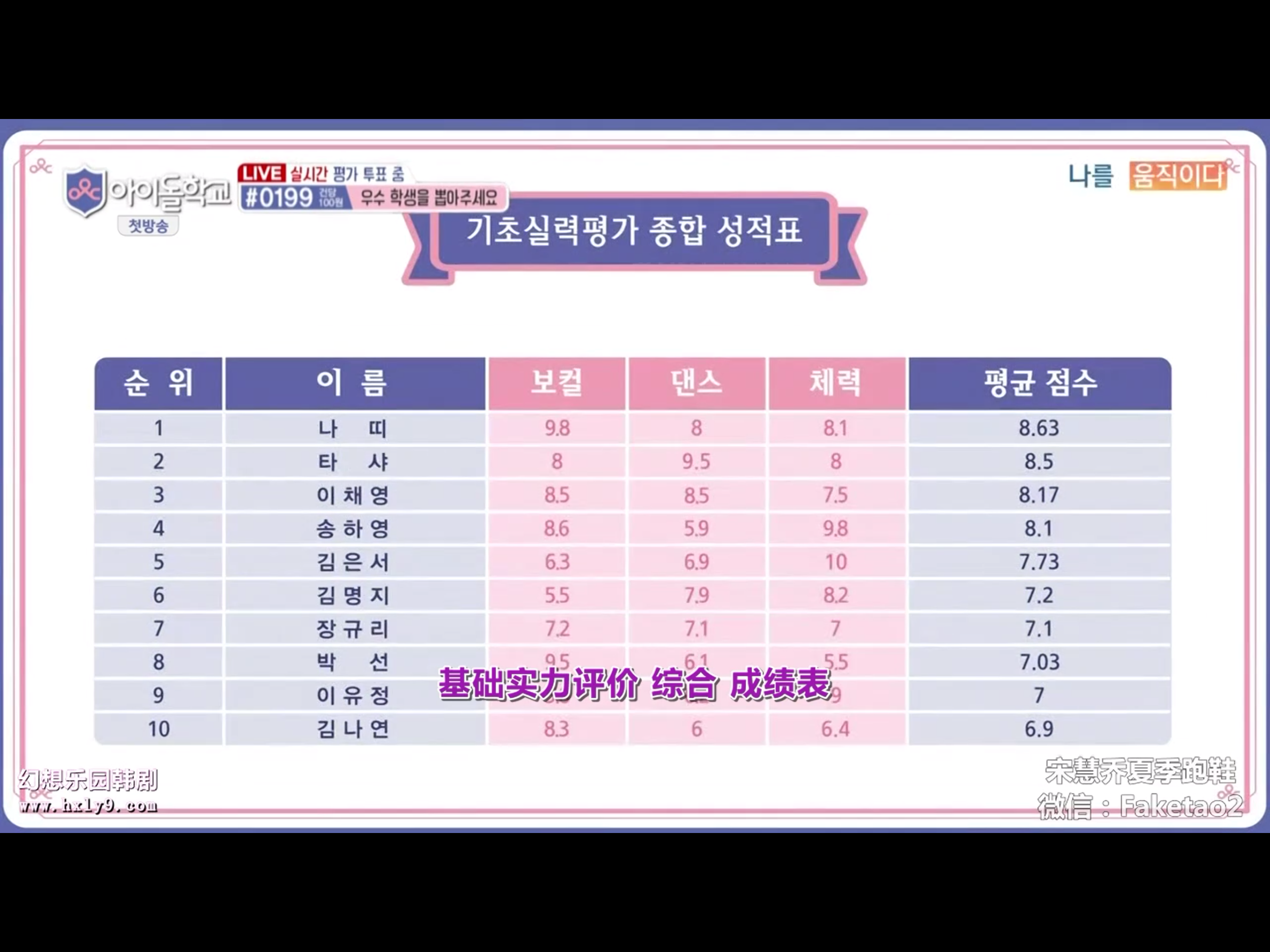 唱歌跳舞基本上都在中下位圈,而且和上位圈比起来,差距也蛮大。一位的Natty歌唱实力接近满分,在节目里面也能很明显听出是非常有实力的适合女团的声音。体力和舞蹈分也在八分左右,总分8.63,Herin的分数相比起来差距十分明显。