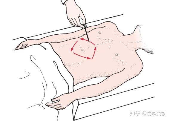 检查方法:仰卧位,双下肢屈曲并拢,腹部放松;使用纯针或棉签分别在肋缘下、腹股沟上由外向内轻划腹壁皮肤。该侧腹肌收缩,脐孔向刺激侧收缩。