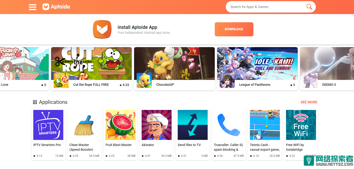 Aptoide是一个非常老牌的第三方应用商店之一。虽然网站界面显得有些过时了,但是还是可以在上面找到一些热门的最新应用程序和免费游戏的。而且,Aptoide 的最大特点在于其对上架APP内容拥有更为宽松的规定。你甚至可以在这里找到 (NSFW)类的应用和游戏,以及一些修改版的应用。