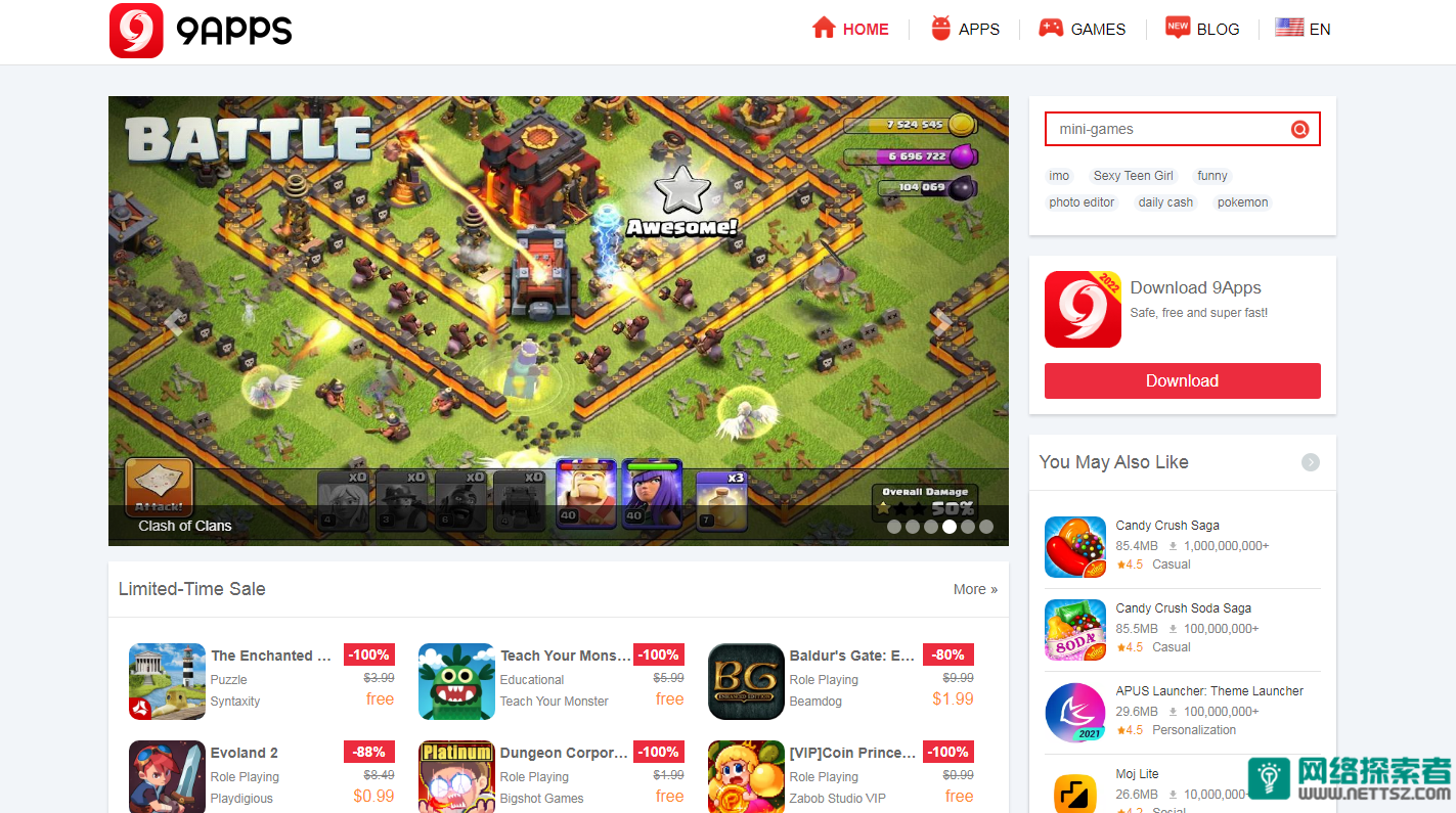 9apps是阿里巴巴推出的一个面向国外市场的安卓应用下载平台,你可以在上面找到最新的热门应用和游戏,所有软件都经过专门的审核验证,确保不会下载到有风险的病毒软件,网站提供国际化的多语言版本,并且还有APP客户端可以直接在手机下载软件以及管理更新。