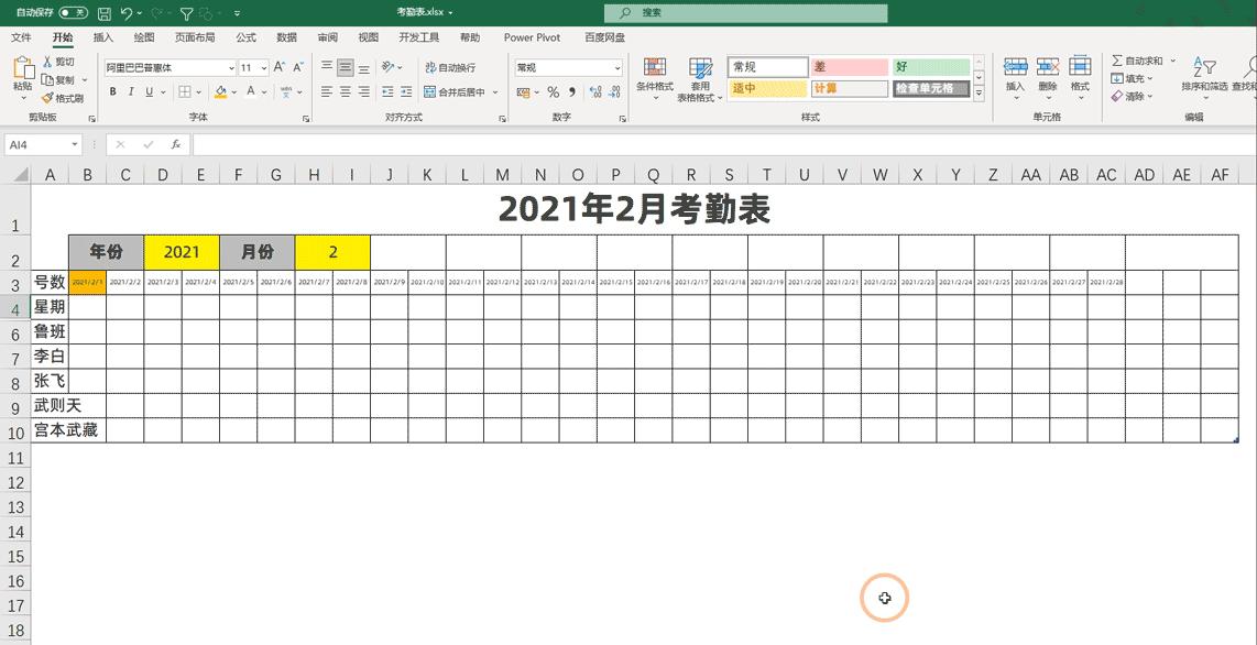 今天跟大家分享下,我们如何让考勤表自动的识别到当月的天数,它的操作其实非常的简单,关键是如何建立一个判断的关系,下面就让我们来看下它是如何操作的