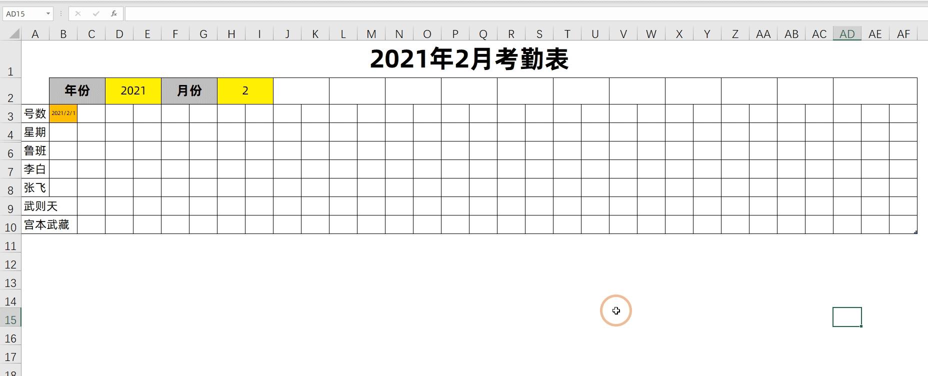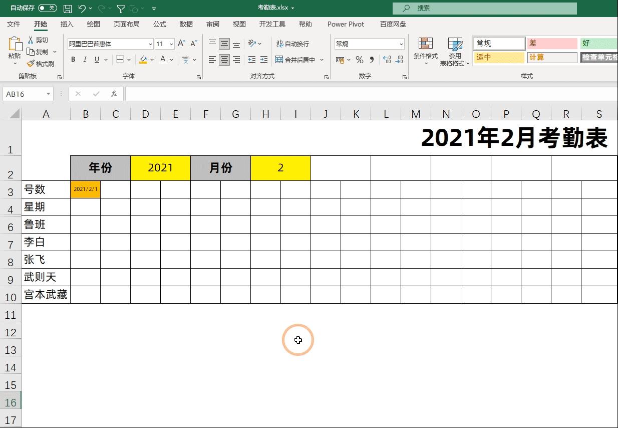 三、让考勤表自动识别当月天数
