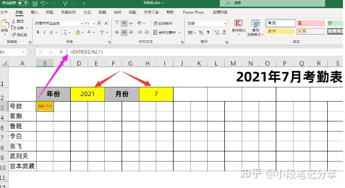 这里我们只需要将公式设置为:=DATE(D2,H2,1)就能构建出每个月的第一天,D2年份所在的单元格,H2是月份所在的单元格,1就表示每个月的1号,我们更改年份和月份这个日期是可以自动发生变化的