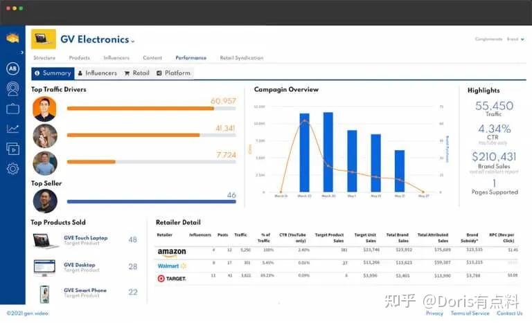 如果你希望将你的网红营销提升到一个新的水平,该平台包括电子商务功能,例如亚马逊、沃尔玛、Target、百思买等主要零售商的库存监控、绩效分析和销售转化数据等!