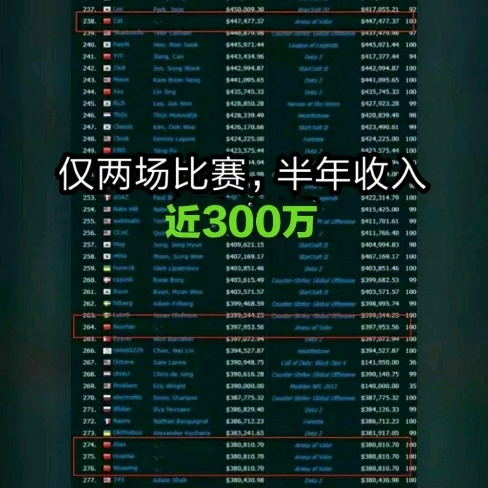 在一家专业机构统计的2019年世界电竞俱乐部年度奖金统计中,eStarPro以一千多万的高额奖金位于世界俱乐部第9名,这也是王者荣耀第一支入围世界俱乐部奖金的战队,eStarPro牌面十足。值得注意的是,在每位选手的年度奖金中,2019年虽然才过去一大半,eStarPro每位选手的奖金额已经超过了百万。像猫神和Alan这种老牌的电竞选手当然不足为奇,而像才刚刚步入职业大半年的新人选手花海和无铭,也跨入了年入百万的行列,花海截止目前为止,年度奖金38万美金,而且这才是kpl两个比赛结束后的奖金,未来还有秋季赛和冬冠杯,从这一点上,我们也看出了中国电竞选手的薪水还是十分可观的!