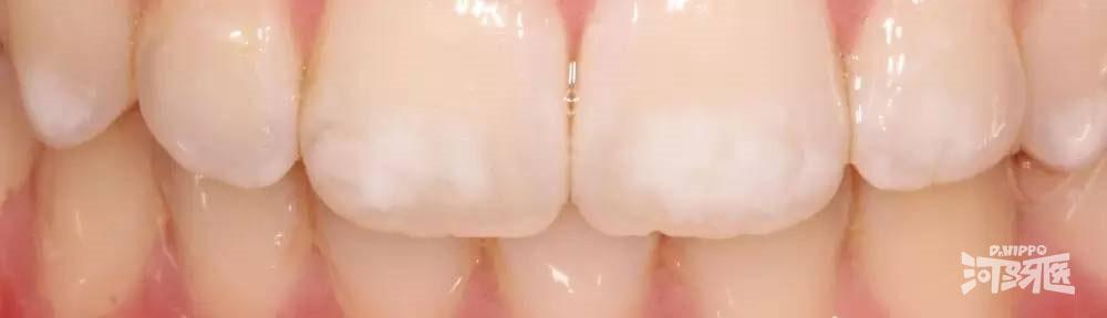举个栗子:很多家长会看到宝宝的牙齿上容易出现一块块的白斑,其实那就是患有初期龋齿的征兆,牙面上就会因为脱矿而形成白垩色斑块。